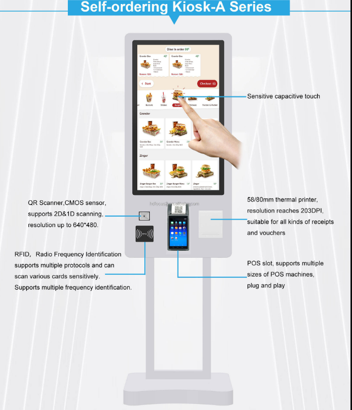 Streamline Orders 21.5″/27″ inch Self-Ordering Kiosk Systems Touch Screen Menu Board Payment Kiosk Ticket Check Printing Vending Machine